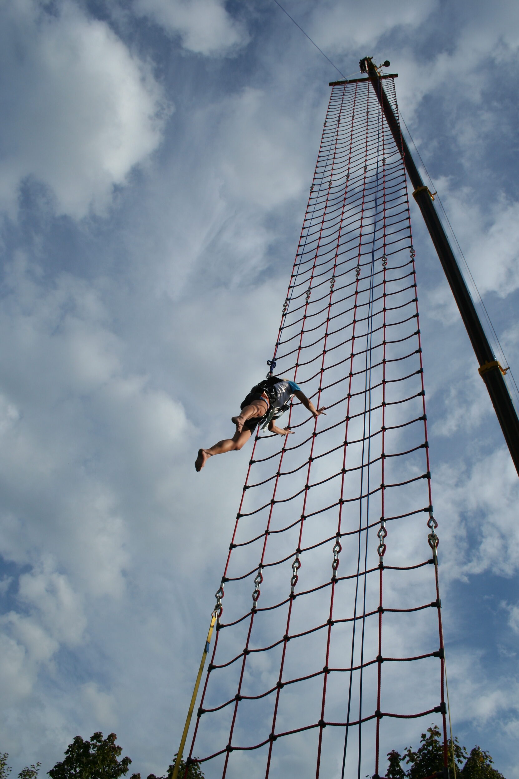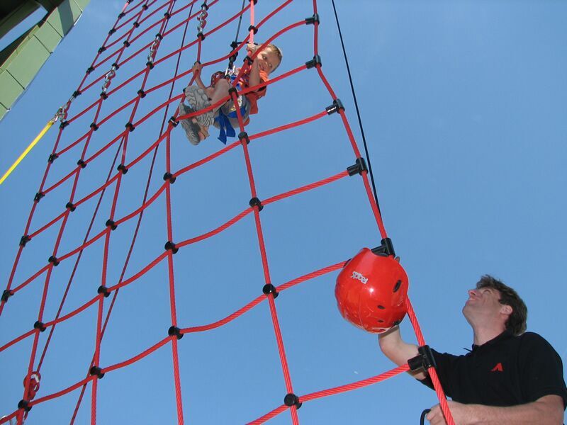 Der Adrenalin-Kick! Das an einem Kran aufgebaute Kletternetz ist mit Toprope-Sicherung für zwei Kletterer ausgelegt, die unter fachkundiger Absicherung – auch als Wettklettern – auf eine Höhe von bis zu 25 Metern klettern können. Dieses K5-Kletter-Modul ist nichts für Leute mit Höhenangst. Mutige werden mit einem Adrenalin-Kick der Extraklasse belohnt. Und dem Veranstalter ist ein echter Eyecatcher – im wahrsten Sinne des Wortes – garantiert.