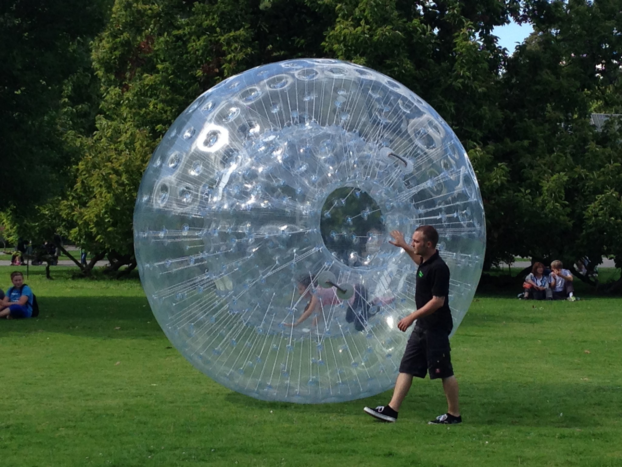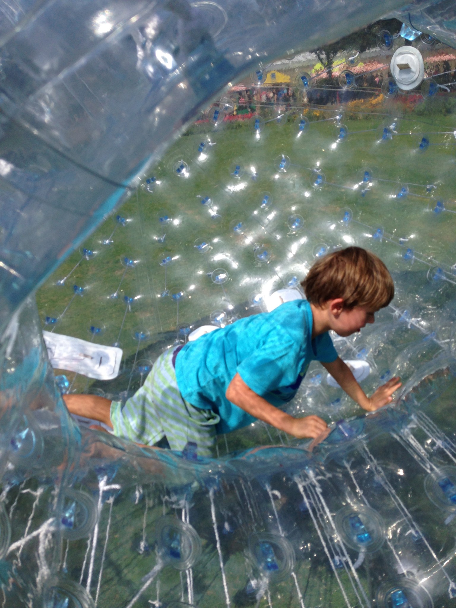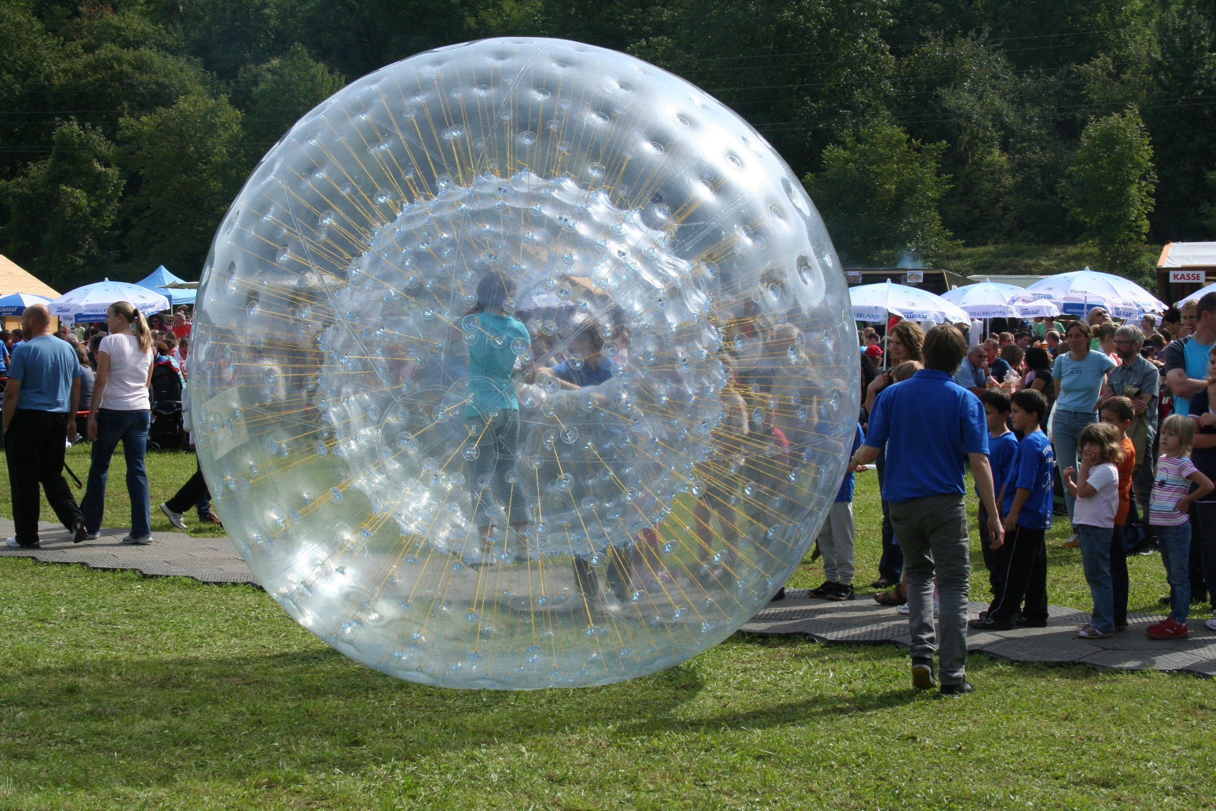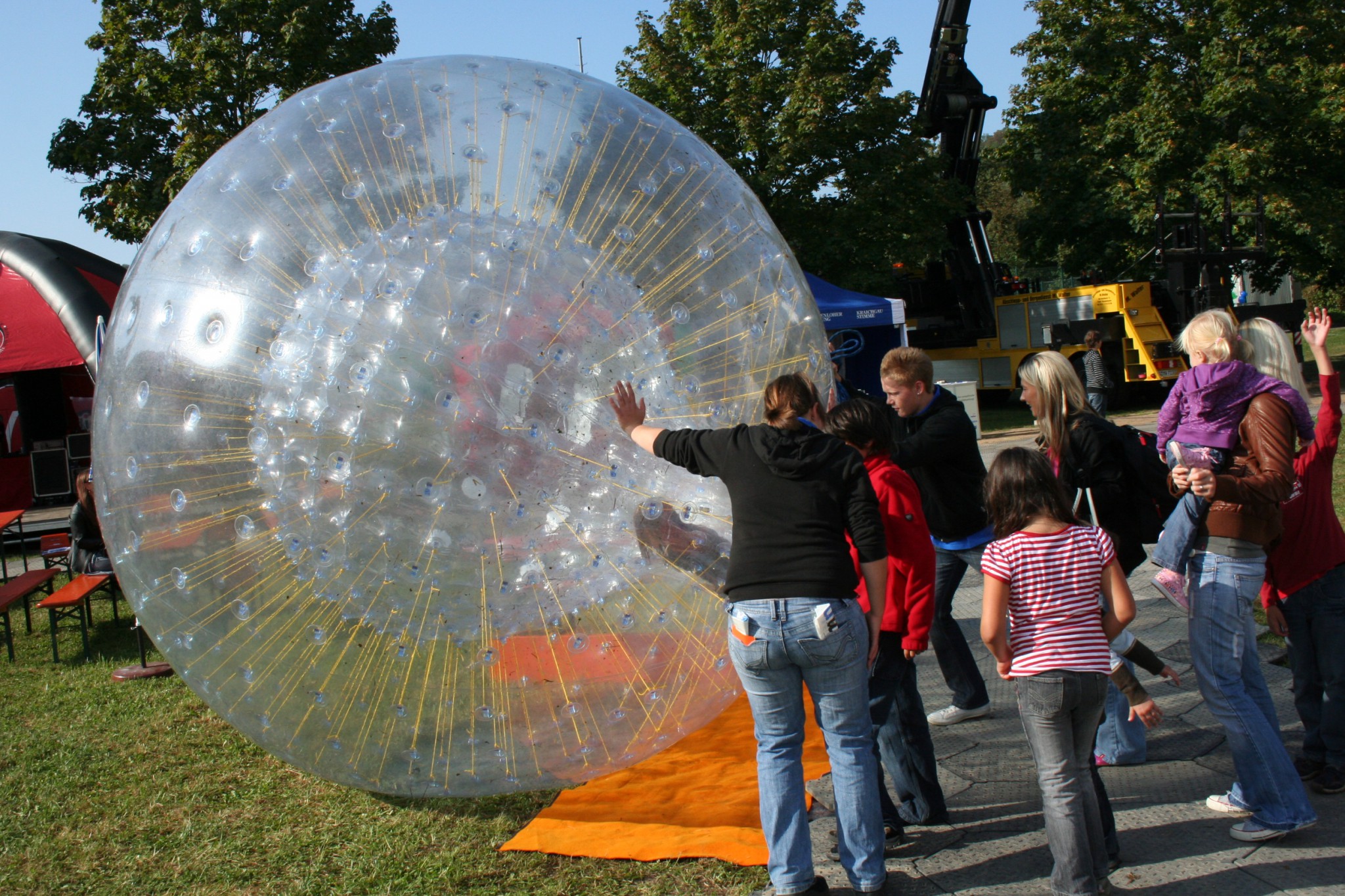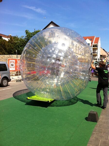 Kopfüber ins Vergnügen! Die Teilnehmer des Parcours sehen die Welt aus der drei Meter großen Luftpolsterkugel aus völlig neuen Perspektiven. Die Kugel ist mit Luft gefüllt und man kann sie durch einfaches Laufen im Inneren steuern. Bekannt wurde dieses Modul durch eine Telekom-Werbung. Auch im Winter geeignet, um zum Beispiel die Skipiste hinunter zu rollen.